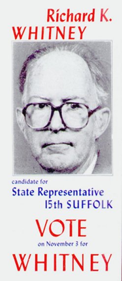 Richard K. Whitney of Boston, Massachusetts has been a driving force in the Massachusetts Prohibition Committee since 1970. He has served as co-chairman of his state convention, as a local organizer, as a state committee member, and as a national committee member, in addition to being a standard-bearer in several elections. Richard was born in 1938. He has no children and lives alone. He is a member of Park Street Church (Congregational) in Boston. He is employed by the Church and also by D.B. Kelley Security Agency. He is a graduate of the Worcester, MA public schools and of Zion Bible Institute; he has attended Berkshire Christian College. He serves on the board of directors of the Mission Hill Housing Service. While attending Berkshire Christian College in the early 1960's, Whitney realized that he should join a political party which stands for Christian principles in society. After checking out all of the parties listed in the almanac, he settled on the Prohibition Party. Richard was elected to the Massachusetts Prohibition Committee in 1971, after serving as co-chairman of the state convention in 1970. He did organizing, editing, and literature distribution for the state committee through the 1970's. He became chairman of the state committee in 1979. In 1975, Richard was appointed a national committeeman for Massachusetts. He was placed on the executive committee of the Prohibition National Committee in 1991 and served there until 1999. Whitney made his first run for public office in 1985, standing for election to District Six of Boston City Council. He obtained 964 votes, 13.56% of the total. Since then, he has run for District 15 (Suffolk) of the state legislature in 1986 (486 votes), District 15 again in 1990 (989 votes), District 15 (Suffolk) again in 1992 (1331 votes), District 15(Suffolk) again in 1994 (803 votes, 14.38% of the total), and District 15(Suffolk) again in 1998 (663 votes, 12% of the total). His opponent at each District 15 election was an incumbent Democrat, Kevin Fitzgerald. The district is heavily Democratic. Richard hoped to run for Councilor at large of the Boston City Council in 1999, but was unable to collect enough signatures (500 needed) to get on the ballot. He now plans to run for the MA state senate in 2000. Richard K. Whitney has run for office more times than has any living Prohibition Party member other than national chairman Earl F. Dodge. He is one of our best vote-getters. Return to the Prohibition Party Local Chapters Page |